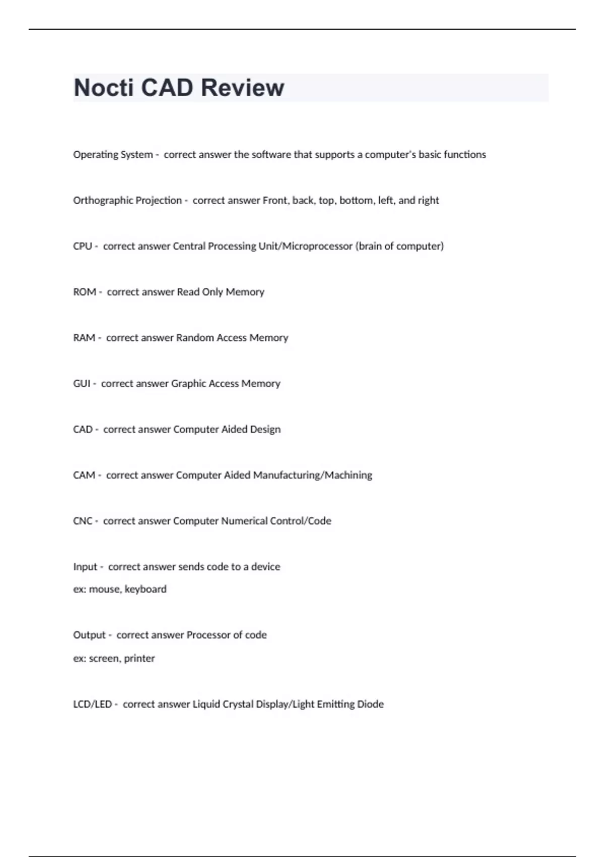 Nocti CAD Review questions with correct answers graded A+