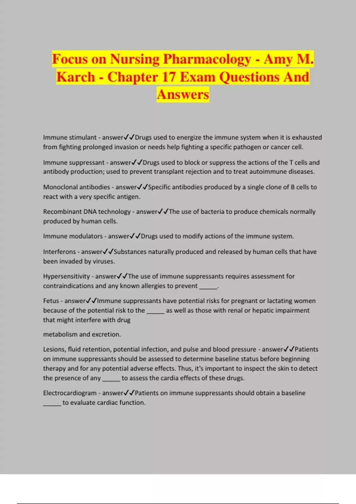 Focus on Nursing Pharmacology - Amy M. Karch - Chapter 17 Exam Questions And Answers