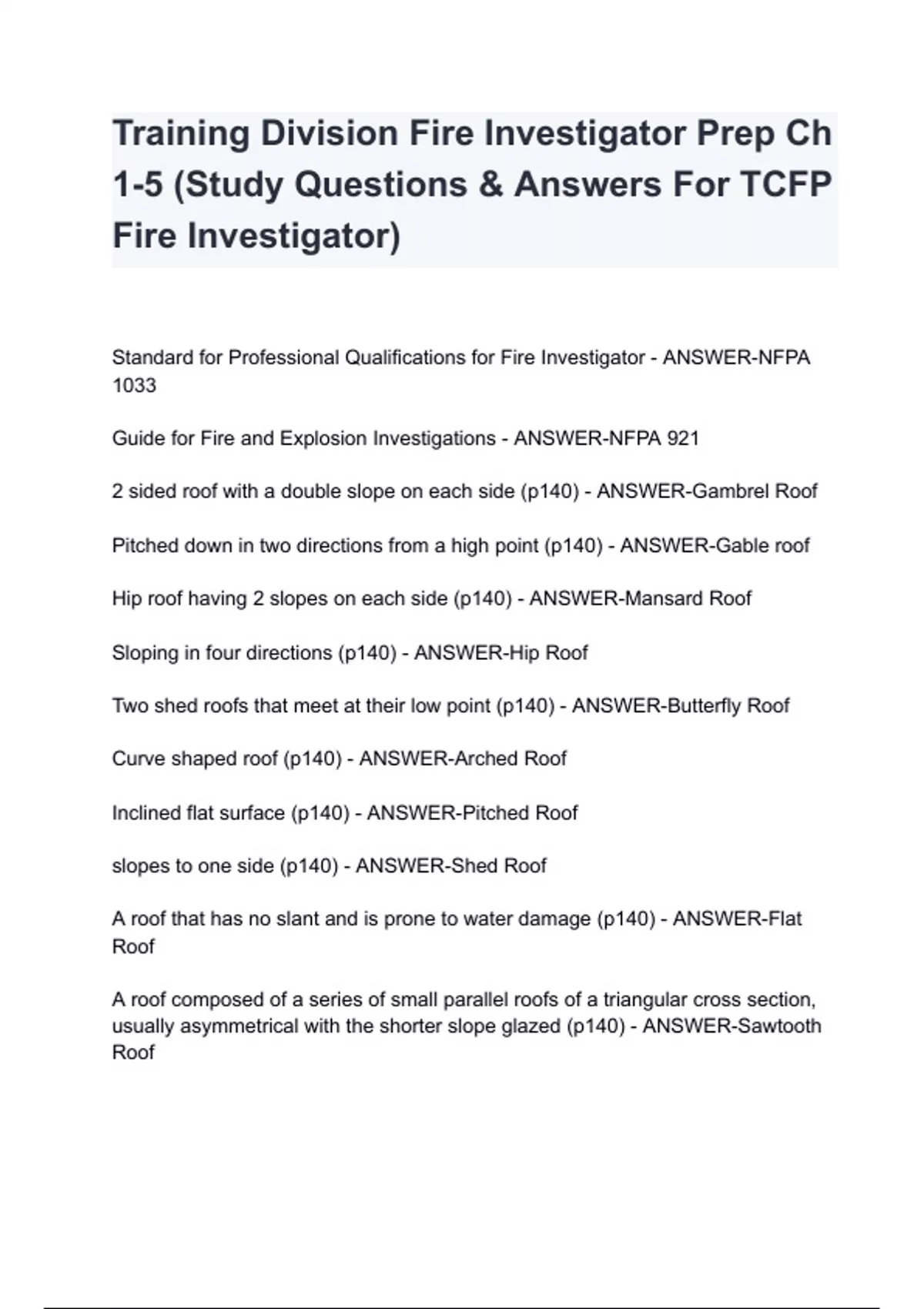 CFP Test (Study Questions & Answers For TCFP Fire Investigator