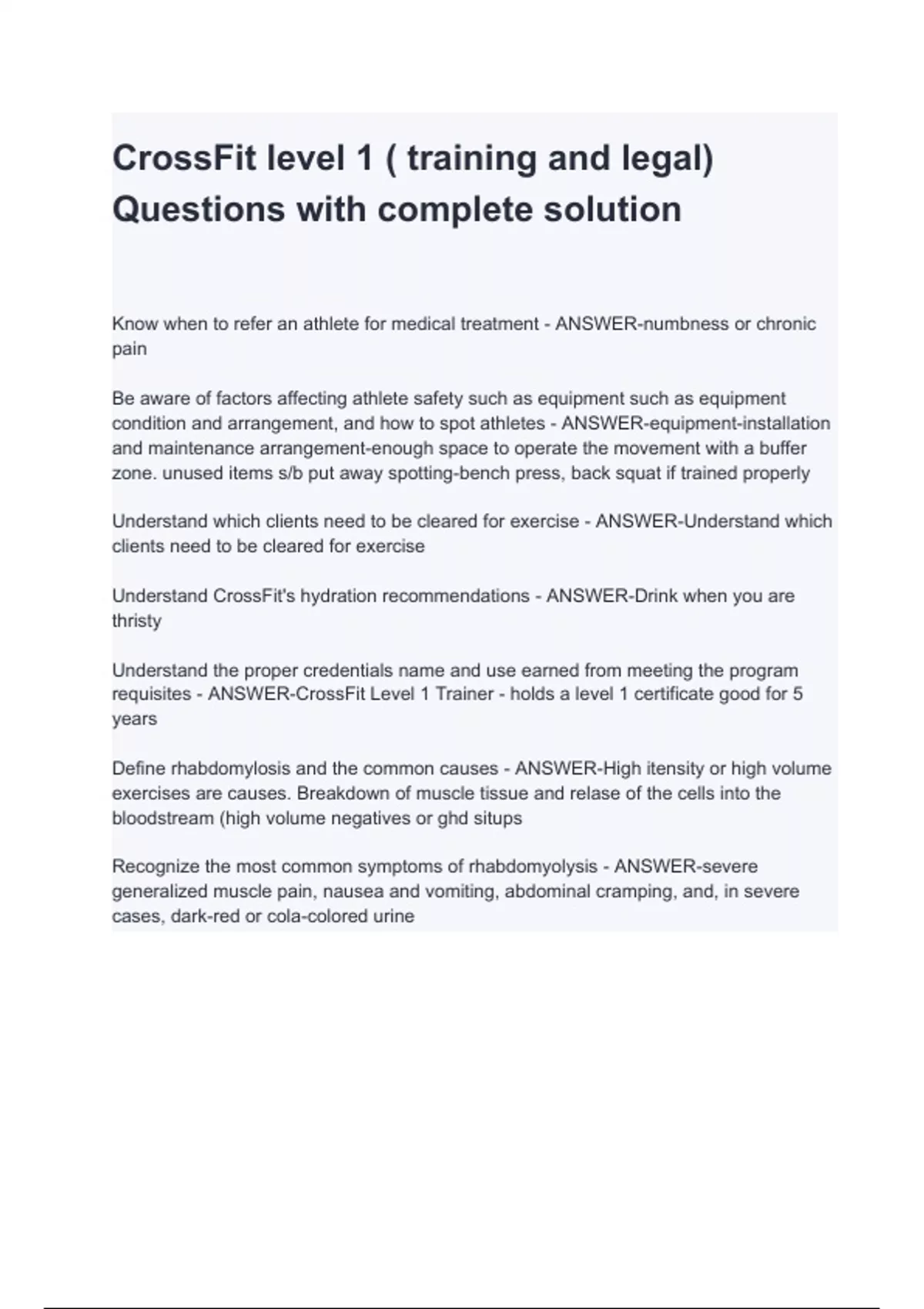 Every Flash card for the CROSSFIT LEVES questions and answers
