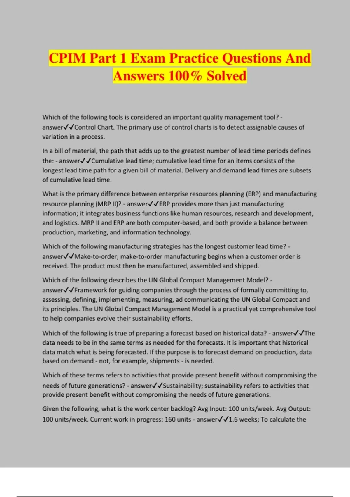 CPIM Part 1 Exam Practice Questions And Answers 100% Solved
