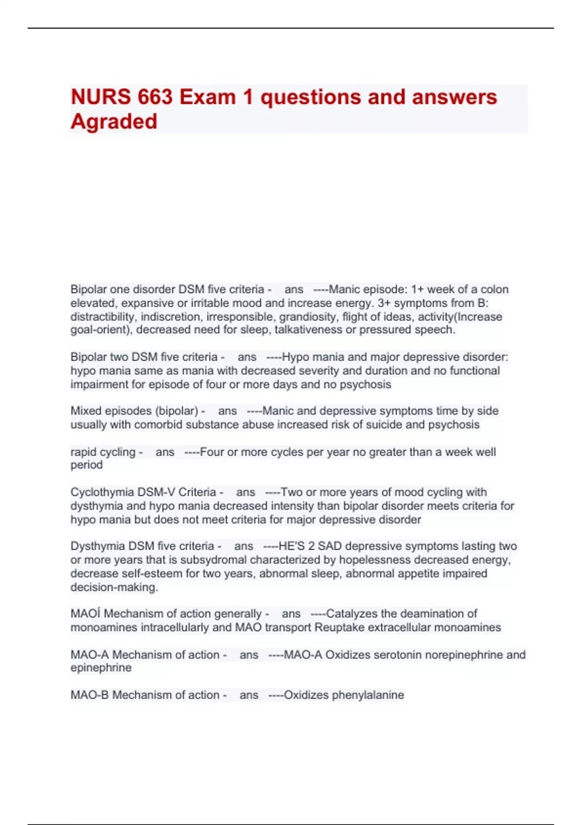 NURS 663 Exam 1 Study Guide: Updated A+ Score Solution