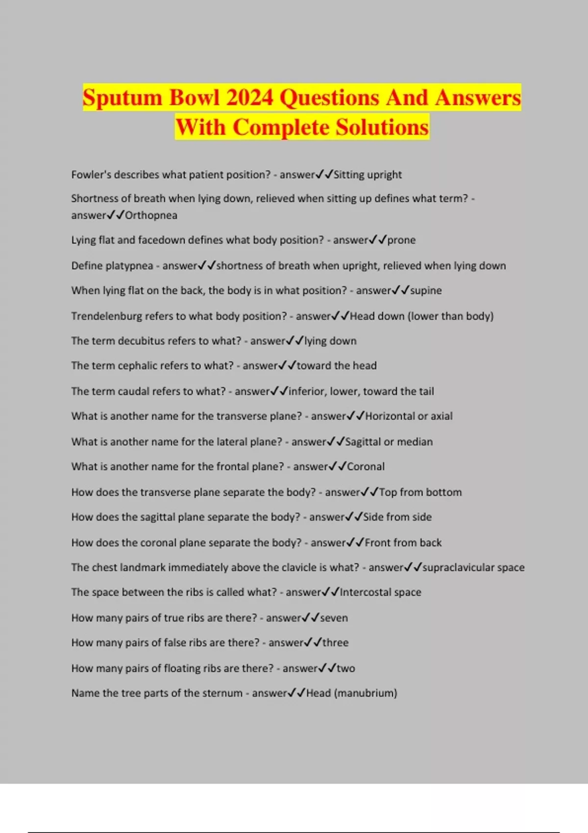 Sputum Bowl 2024 Questions And Answers With Complete Solutions