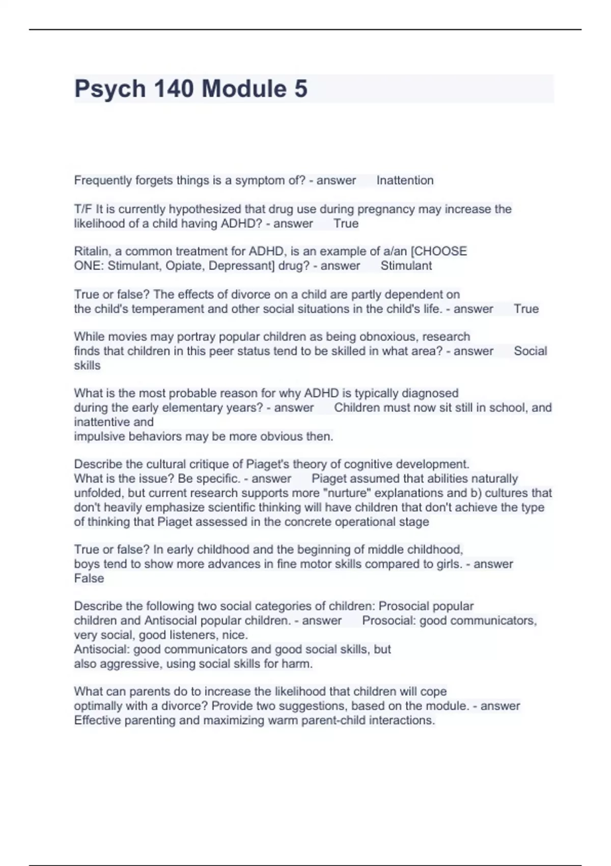 Exam (elaborations) Developmental Psychology 140 Module 2 exam Questions with solutions 2024 Exam (elaborations) Developmental Psychology 140 Module 7 Adulthood Questions with solution 2024 Exam (elaborations) Module 1 (psyc 140) Questions with Accurate Answers 2024 Exam (elaborations) Module 2 (Psyc 140) Questions with correct Answers Exa