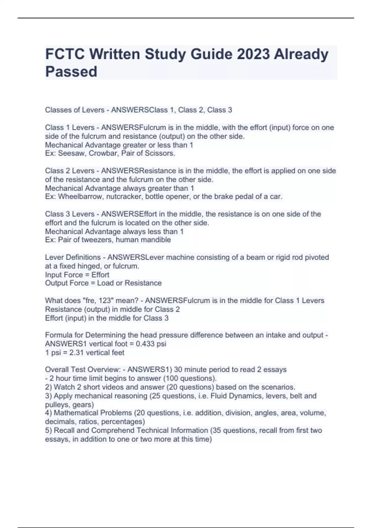 FCTC Written Study Guide 2023 Already Passed