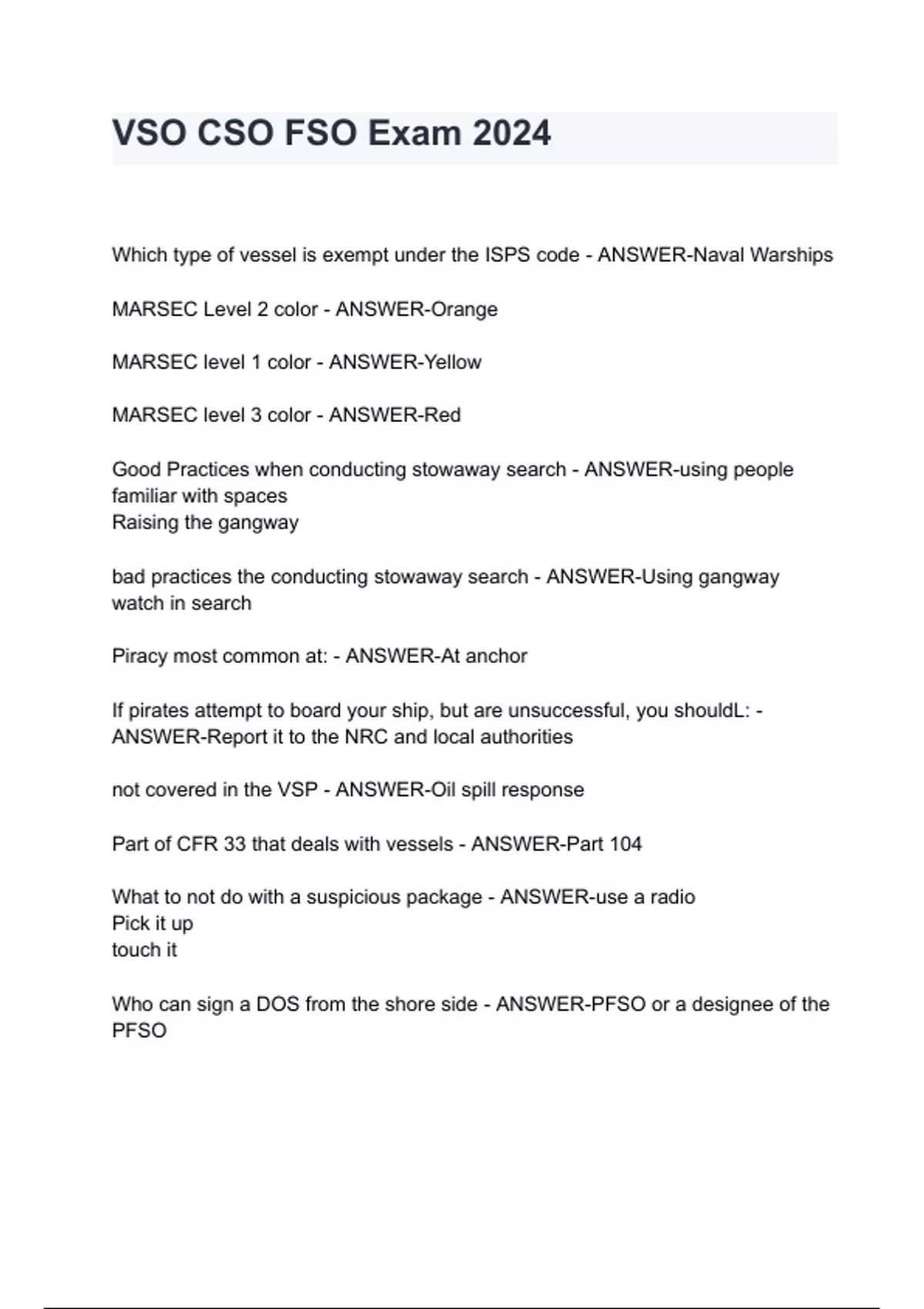 VSO CSO FSO Exam 2024 Questions with 100% Correct Answers | Verified | Updated