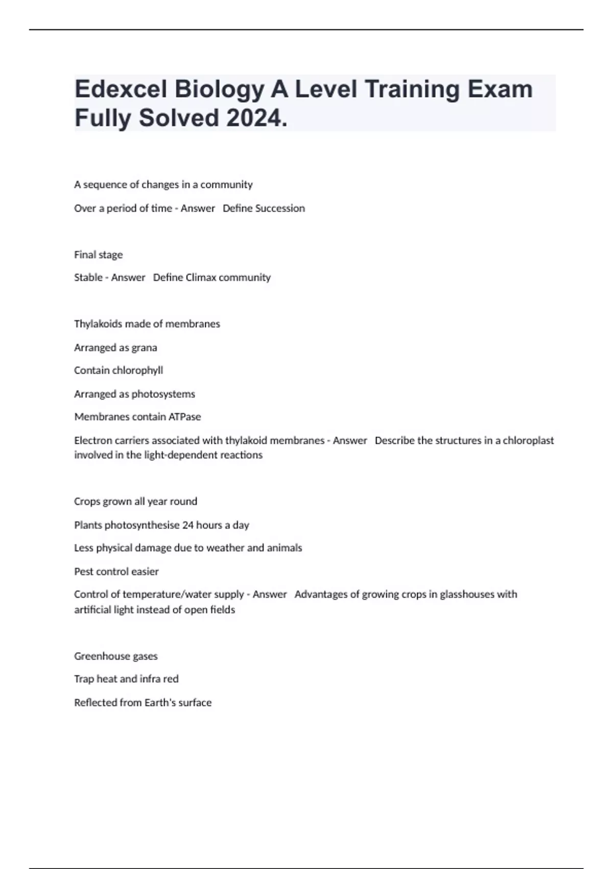 Edexcel A level Biology Final Review Exam Well Answered Rated A+ 2024.