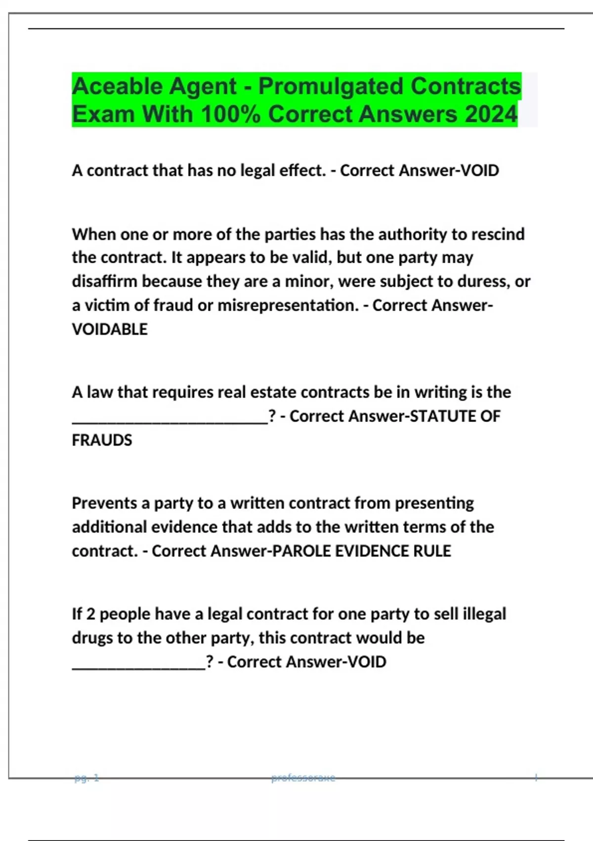 Package deal for Aceable Promulgated Contracts Practice Test Questions with 100% Correct Answers | Verified | Updated 2024