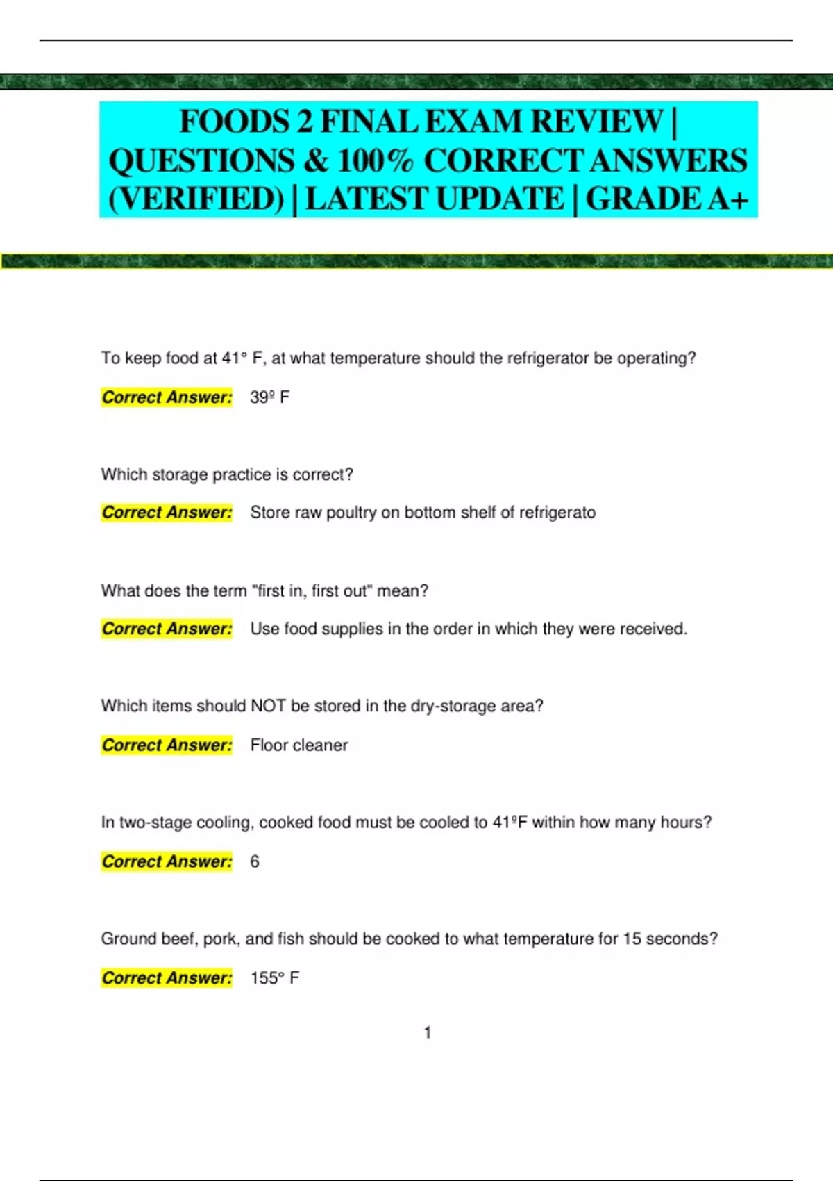 FOOD SAFETY MANAGER EXAM PACK | QUESTIONS & 100% CORRECT ANSWERS (VERIFIED) | LATEST UPDATE | GRADEA+