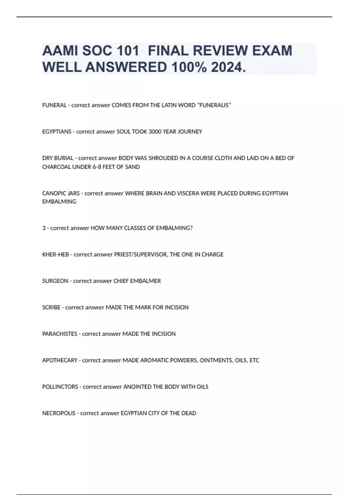 1 Exam (elaborations) AAMI Anatomy Unit 1 Exam Questions And Correct Answers 2024 2 Exam (elaborations) AAMI - Anatomy End Of Semeseter Exam With Complete Solutions Rated A +2024. 3 Exam (elaborations) Aami Funeral Service Final Review Exam With Complete Solutions 2024. 4 Exam (elaborations) AAMI Religions Study Guide Exam With Quality Correct A