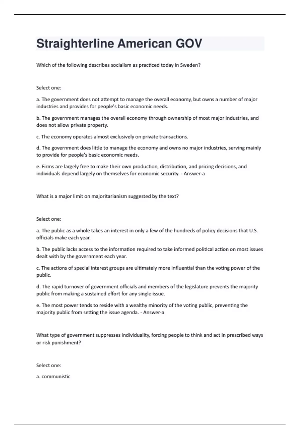 Straighterline American GOV Questions With All Correct Answers, Graded A+!!!
