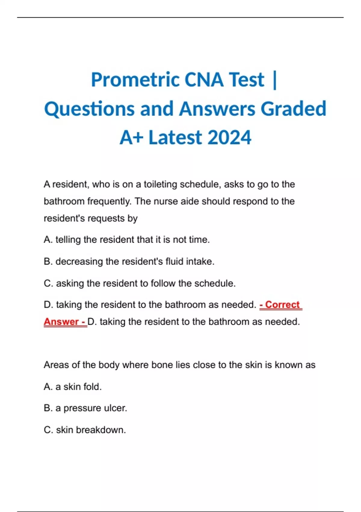 Prometric CNA Practice Test | Questions and Answers Graded A+ Latest 2024