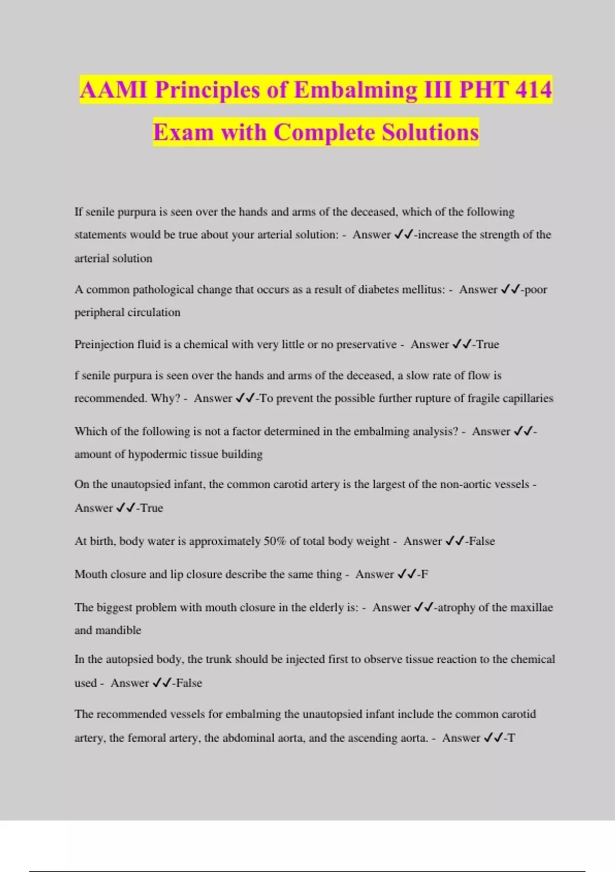 AAMI Principles of Embalming III PHT 414 Exam with Complete Solutions