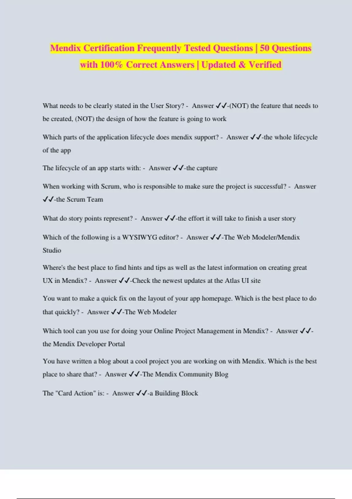 Mendix Certification Exam Questions with Complete Solutions | Verified & Updated | 100% Correct