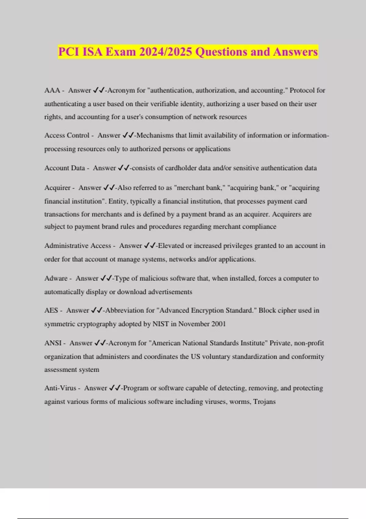 PCI ISA Bundled Exams Questions and Answers 100% Verified and Updated 2024 | Graded A