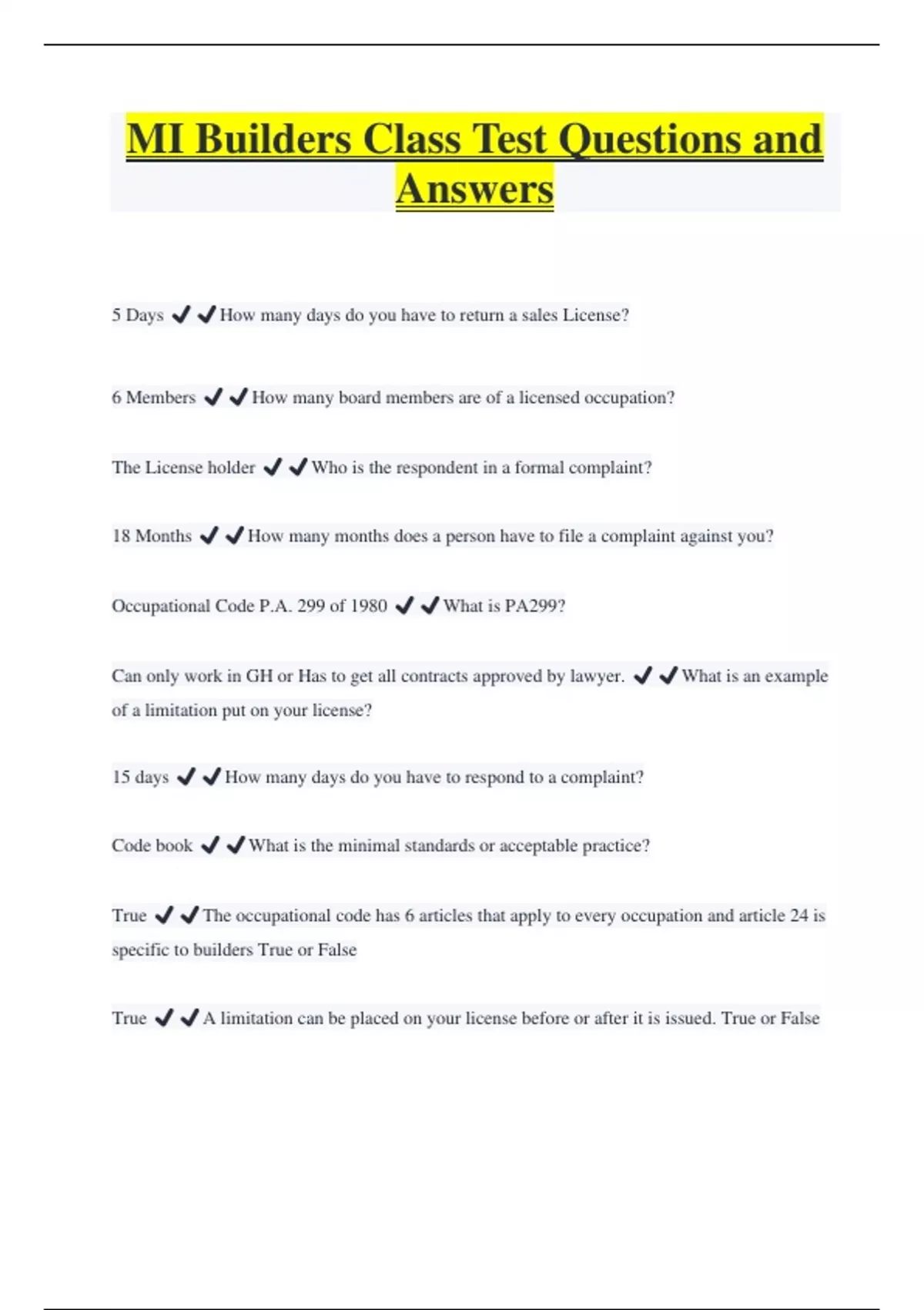 Michigan Residential Builder s License Questions and Answers 100% Verified 2 Exam (elaborations) Michigan License Law Exam Questions and Answers 100% Verified 3 Exam (elaborations) Michigan Builders License - Business and Law Exam Questions and Answers 100% Verified 4 Exam (elaborations) Michigan Builders license Test Questions and Answers 100%