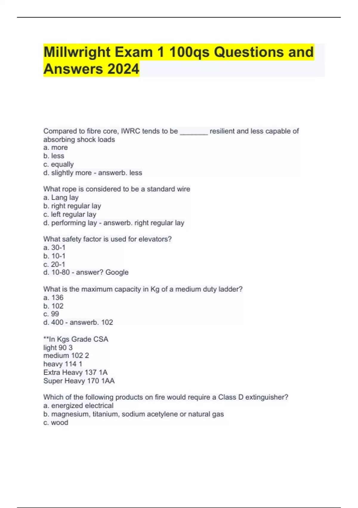 Exam (elaborations) Millwright Rigging & Lifting Questions and Answers 100% correct Exam (elaborations) Questions Millwright Book 3 (complete) Questions and Answers Graded A Exam (elaborations) Millwright Red Seal Study 1 Questions and Answers 100% Solved Exam (elaborations) Millwright-Installation & Levelling Questions and Answers Latest U