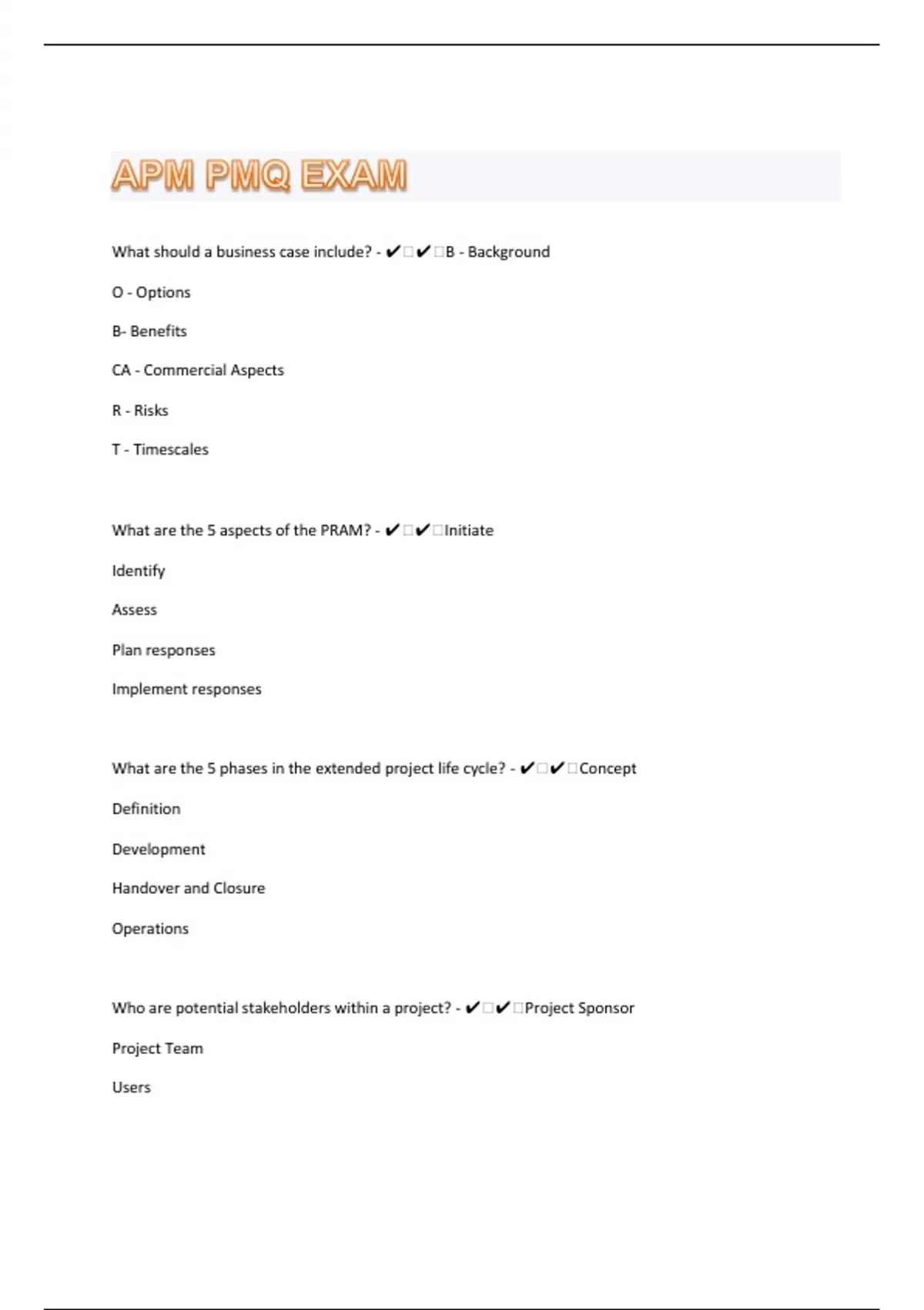 APM PMQ Exam 7th Ed 211 Final Questions With Correct Answers| download to pass|2024|53 Pages