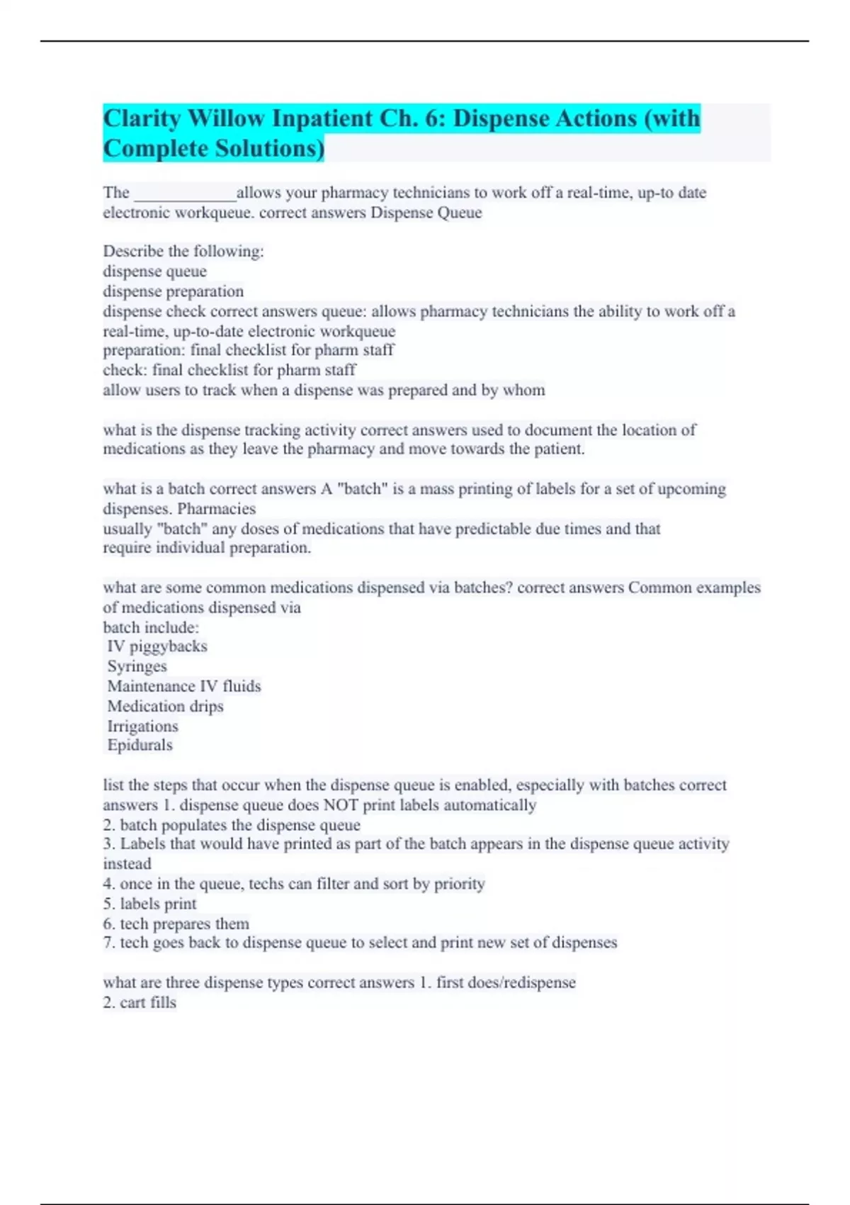 Clarity Willow Inpatient Ch. 6: Dispense Actions (with Complete Solutions) Willow Inpatient, CH 5.0: Order History Actions (100% Correct Answers) Willow Inpatient ch. 3 – Medications (100% Verified) Willow Fundamentals (A+ Guaranteed). Willow Admin 1 (100% Accurate) Study Epic Willow Inpatient RX100 (with Accurate Answers) Rx100 (100% Error-free An