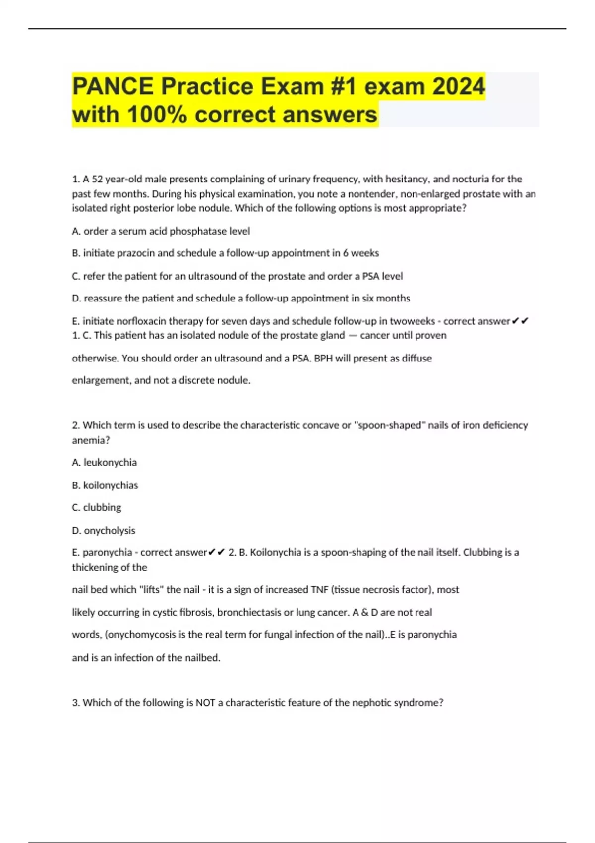 PANCE Practice exam 2024 with 100% correct answers PANCE Practice exam 2024 with 100% correct answers