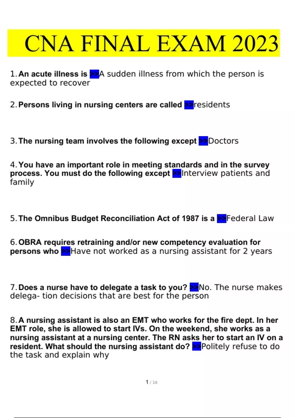 CNA STUDY BUNDLE PACK SOLUTION Questions and Answers 2024 / 2025 | 100% Verified Answers CNA STUDY BUNDLE PACK SOLUTION Questions and Answers 2024 / 2025 | 100% Verified Answers CNA STUDY BUNDLE PACK SOLUTION Questions and Answers 2024 / 2025 | 100% Verified Answers CNA STUDY BUNDLE PACK SOLUTION Questions and Answers 2024 / 2025 | 100% Verified An