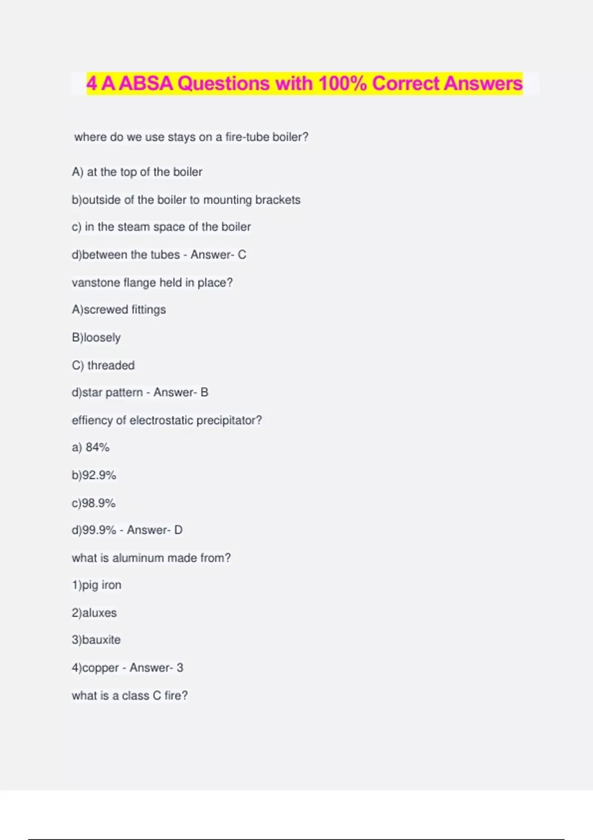 Power Engineering ABSA 4B Exam Questions and Answers 100% Pass