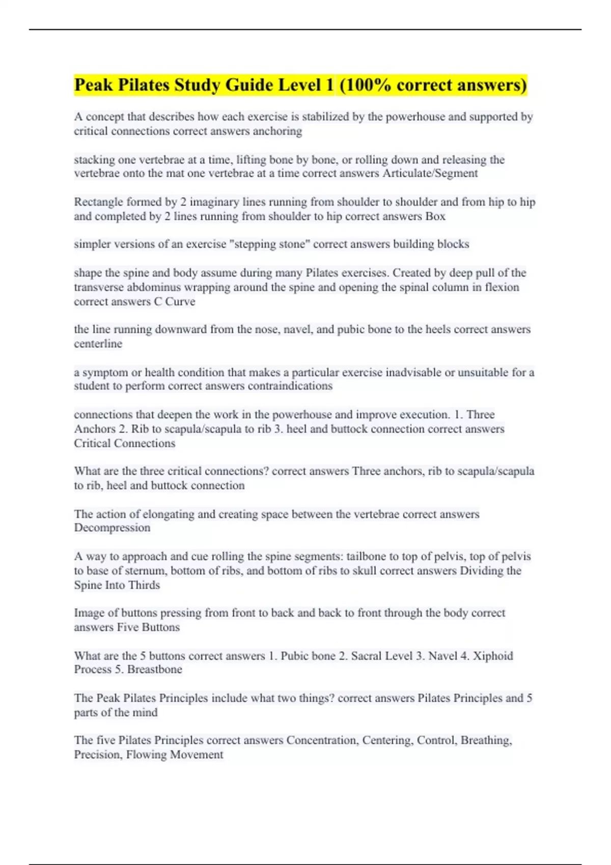 Peak Pilates level 1 (With complete solution)