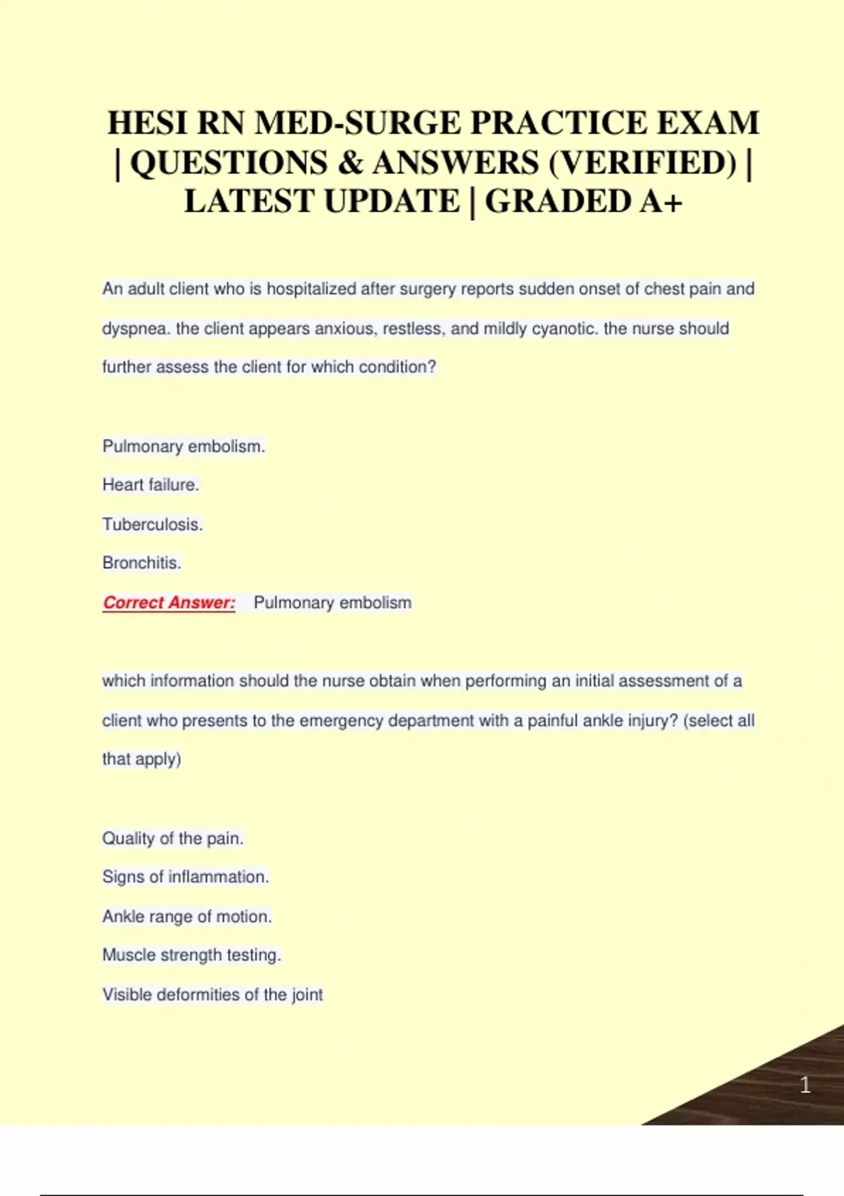 HESI RN MED-SURGE PRACTICE EXAM PACK| QUESTIONS & ANSWERS (VERIFIED) | LATEST UPDATE | GRADED A+