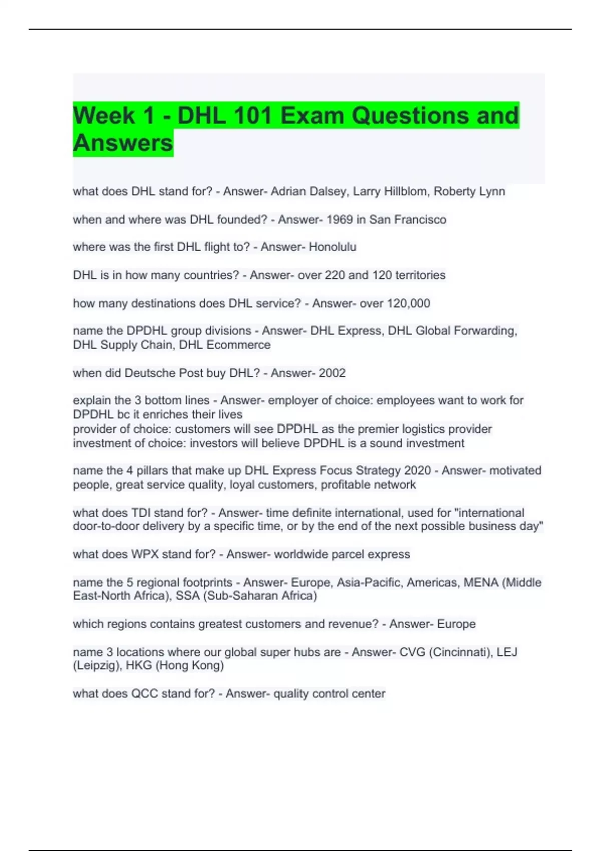1 Exam (elaborations) Week 1 - DHL 101 Exam Questions and Answers- Graded A 2 Exam (elaborations) DHL Job Interview Exam Questions and Answers 2024 - Graded A 3 Exam (elaborations) DHL Interview Exam with correct Answers 2024 - Graded A 4 Exam (elaborations) DHL Interview Exam Questions and Answers 100% correct 5 Exam (elaborations) DHL Intervi