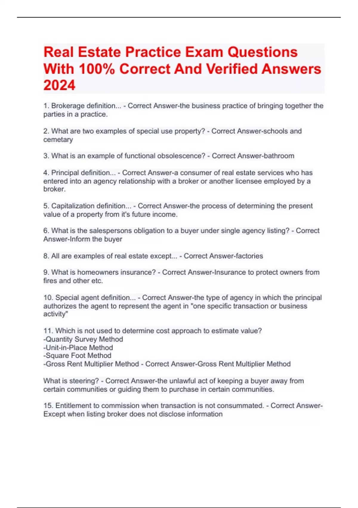 Real Estate Practice Exam Questions With 100% Correct And Verified Answers 2024 NC Real Estate Exam Questions With 100% Correct And Verified Answers 2024 Real Estate Exam Practice Questions With 100% Correct And Verified Answers 2024 California Real Estate Exam Multiple Choice Questions With 100% Correct And Verified Answers 2024