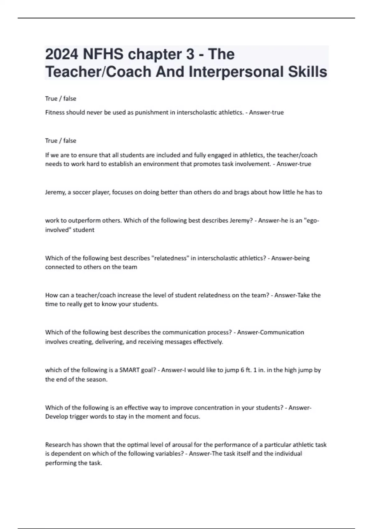 NFHS chapter 3 - The Teacher/Coach And Interpersonal Skills 2024 Questions and Answers(A+ Solution guide)