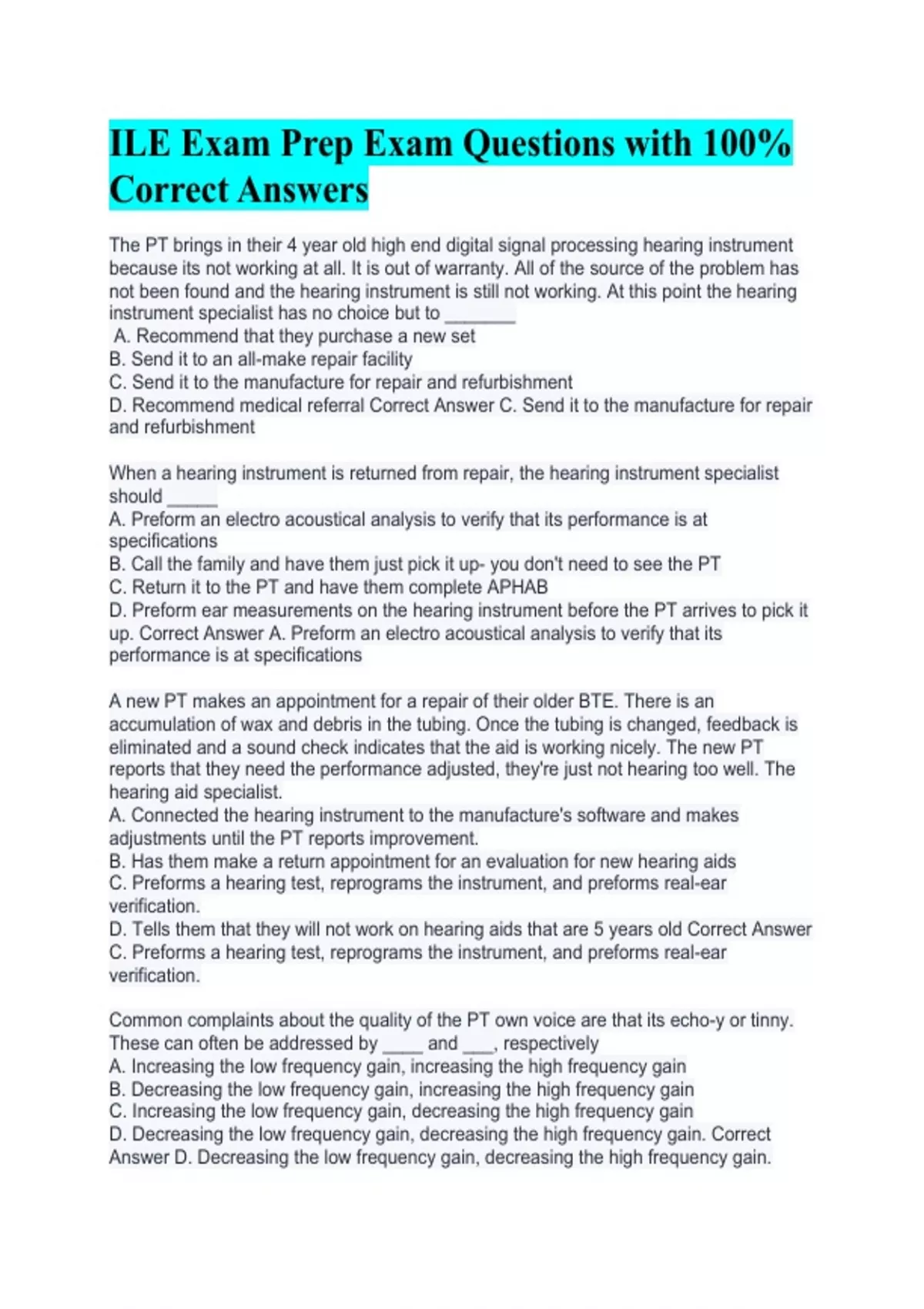 ILE Exam Prep Exam Questions with 100% Correct Answers Study Questions for ILE Exam Questions with 100% Correct Answers ILE PREP FINAL Exam Questions with 100% Correct Answers Multiple choice questions for ILE exam prep (PART 1) Questions with 100% Correct Answers ILE Exam Questions with 100% Correct Answers ILE Exam Prep Exam Questions with 100% C