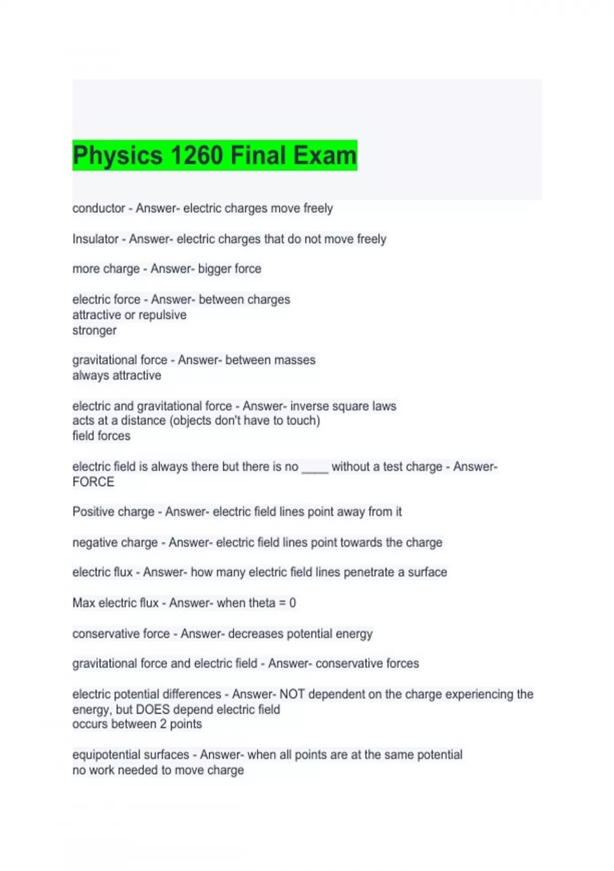 Physics 1260 Exam Bundle 2024