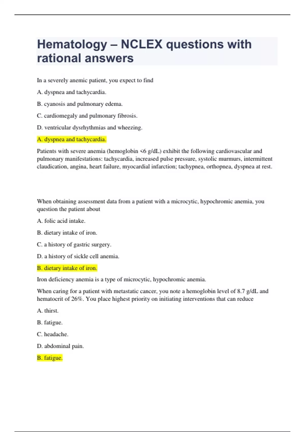 NR-324: | NR 324 ADULT HEALTH I EXAM 2 HEMATOLOGY QUESTIONS WITH 100% CORRECT ANSWERS