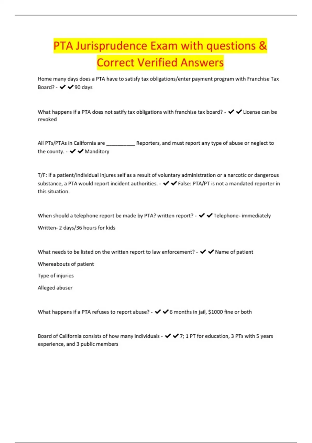 A BUndle of PTA Jurisprudence Exams with Questions & Correct Verified Answers | Passed with Grade A