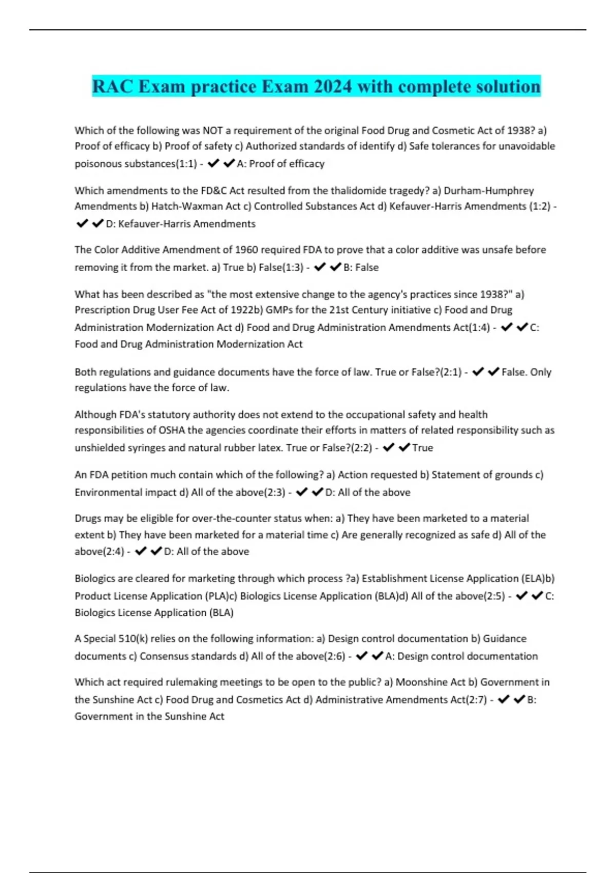 RAC COMPLETE Medical Devices 2024 - BUNDLED Exams. Graded A
