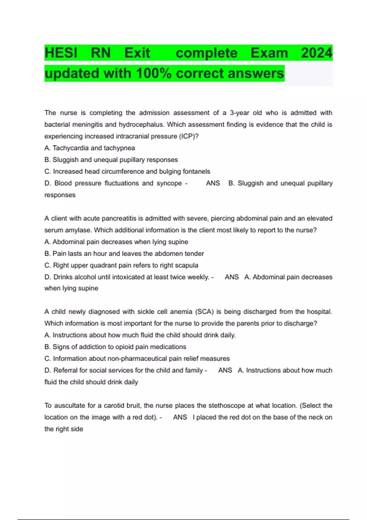 HESI RN Exit complete Exam 2024 updated with 100% correct answers