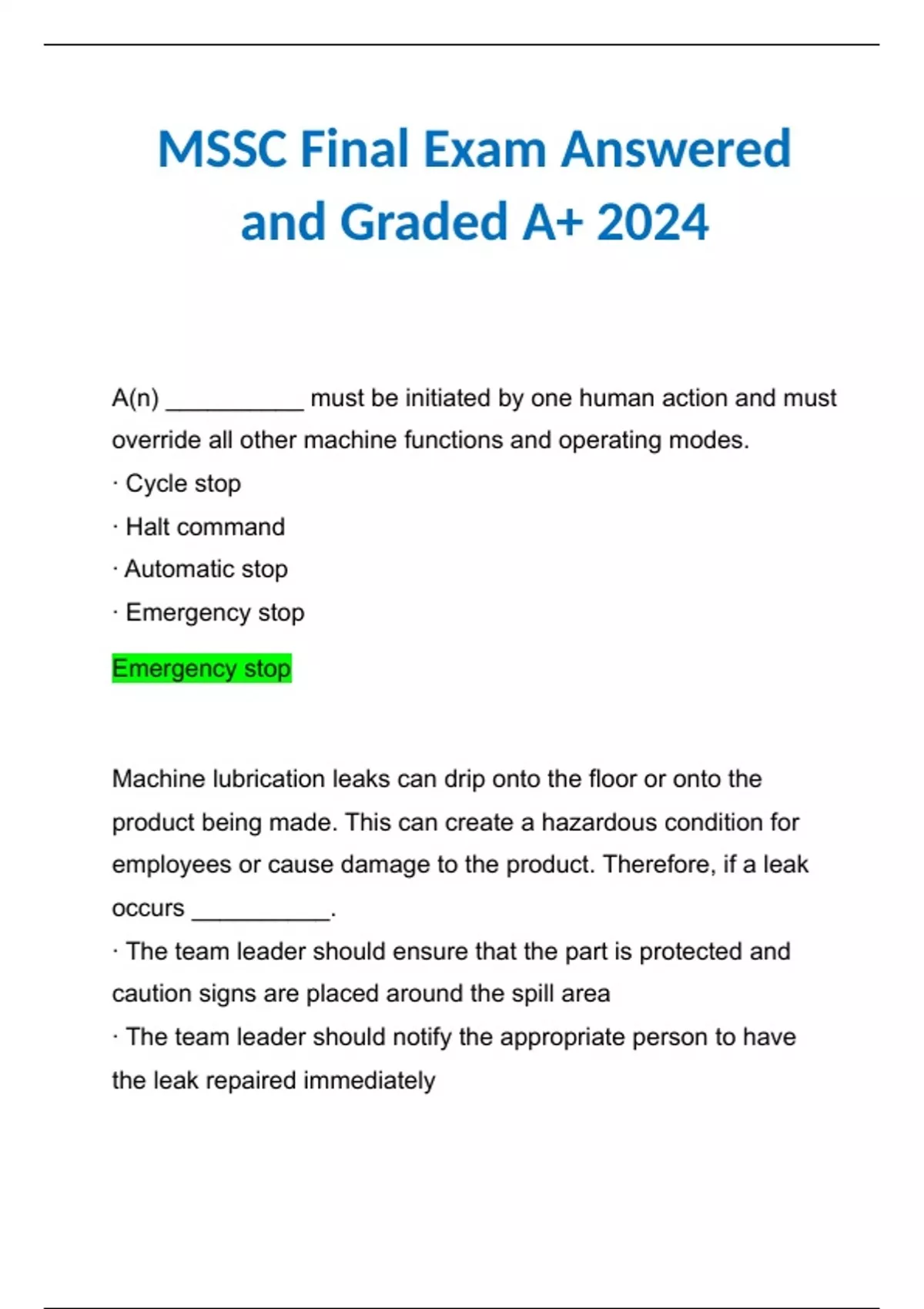 BUNDLE FOR MSSC CLA Terms Chapter 1-9 | Exam Study Guide Latest 2024 | MSSC Final Exam 100% Correctly Answered and Graded A+ Latest 2024
