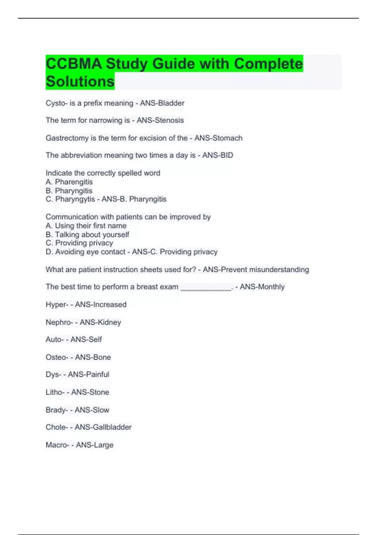 CCBMA Exams Bundle Solutions Pack -Solved