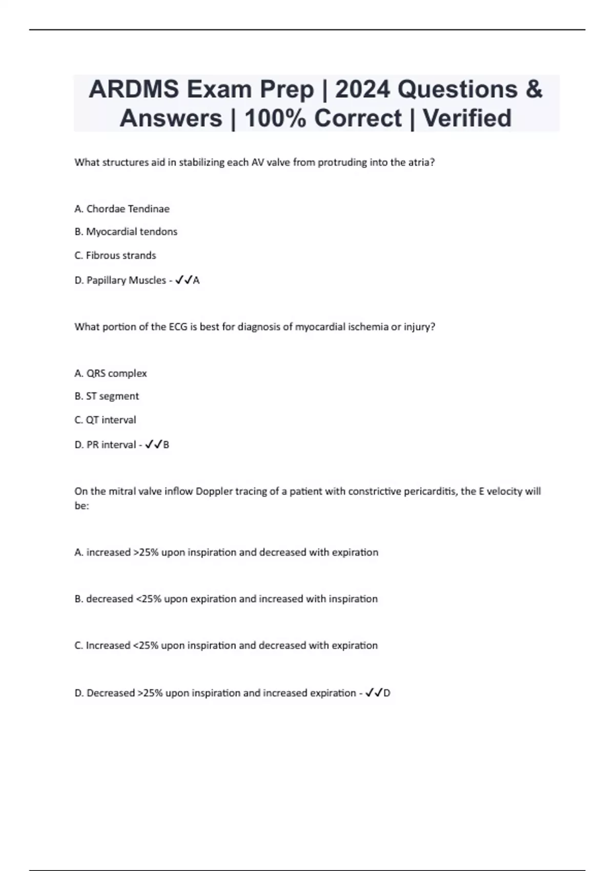 ARDMS Exam Prep | 2024 Questions & Answers | 100% Correct | Verified