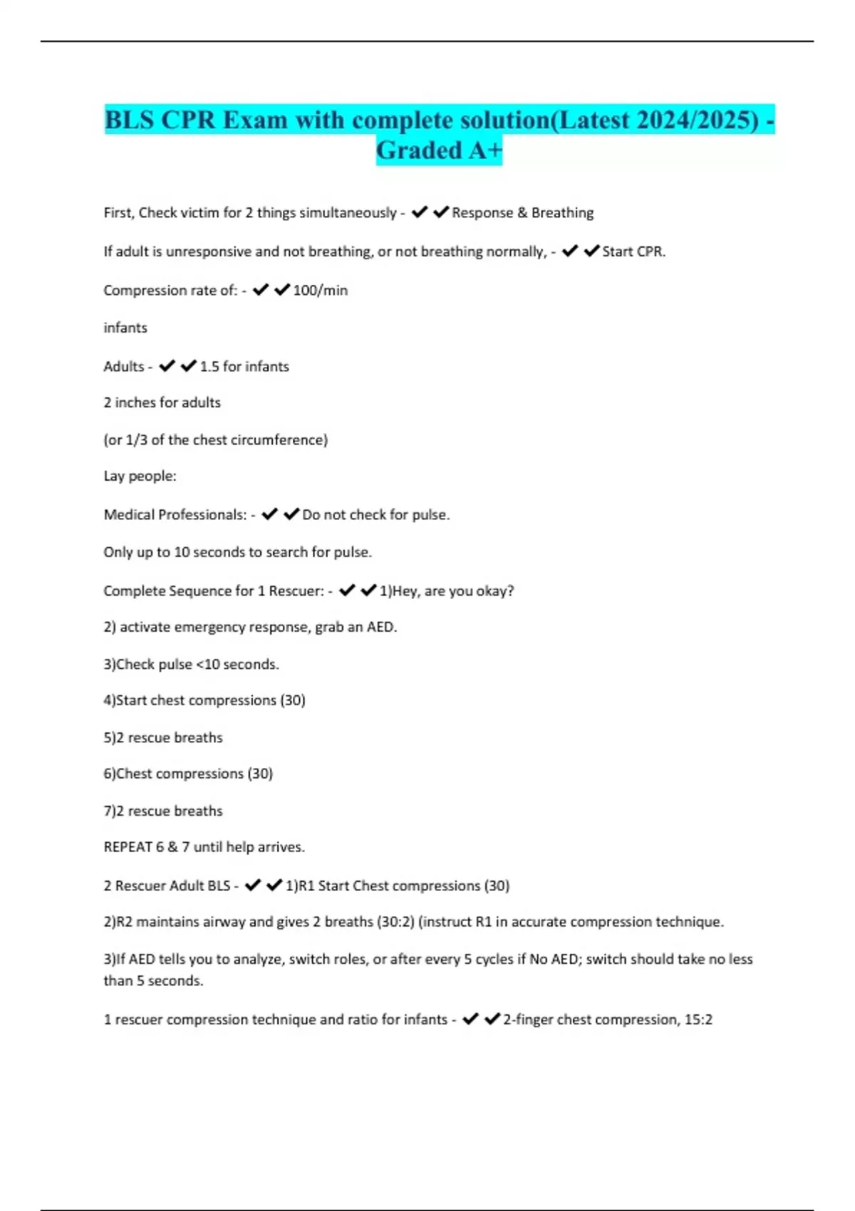 BSL 2024 (Basic Life Support) Full Test Complete Bundled Exams. Questions and Answers