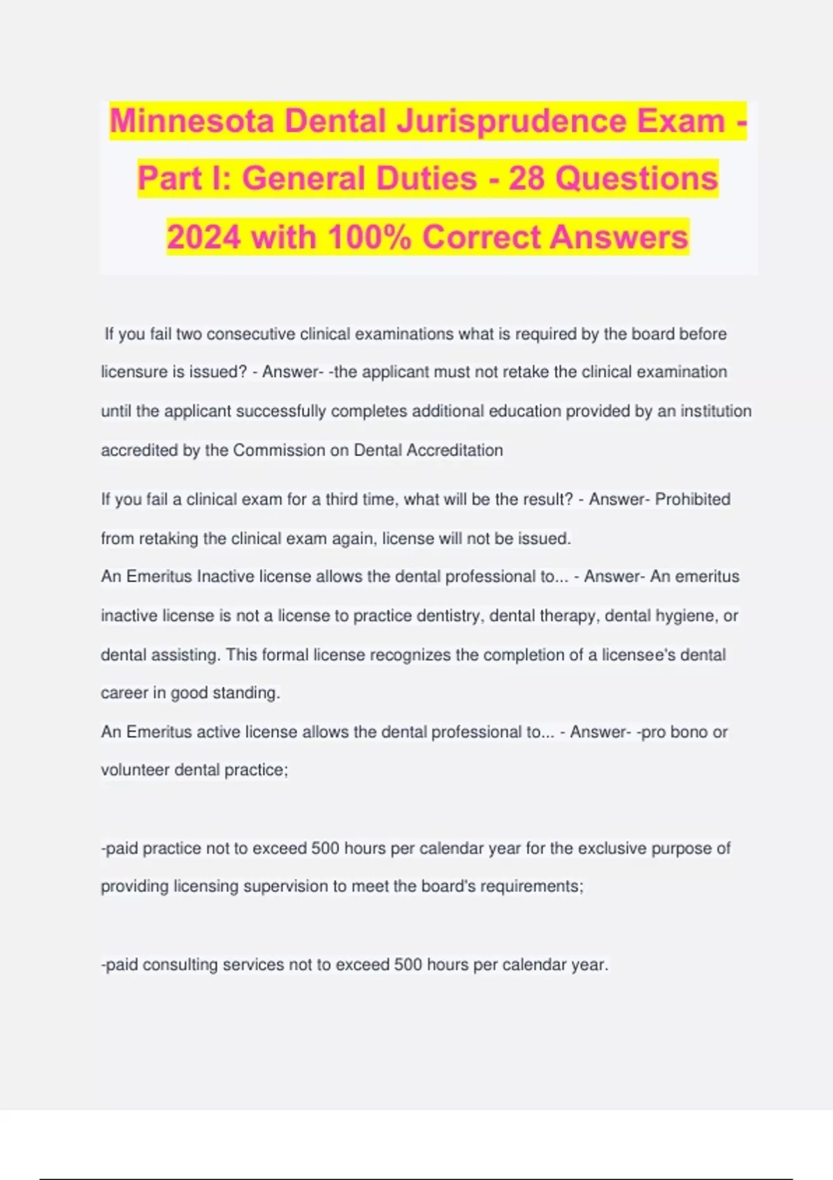 MN Dental Jurisprudence Bundled Exams Questions and Answers 100% Verified and Updated 2024 | Graded A