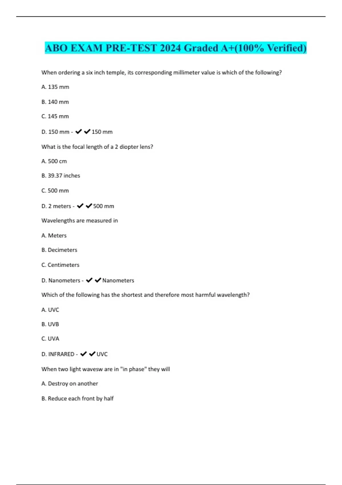 ABO Full Test 2024 Complete - Bundled Questions and Answers. Graded A+
