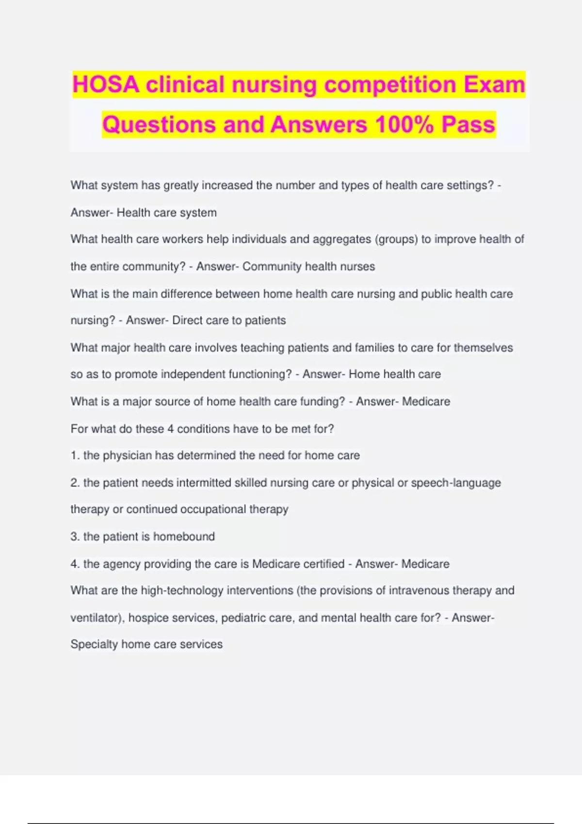 HOSA Exam Questions and Answers 100% Pass