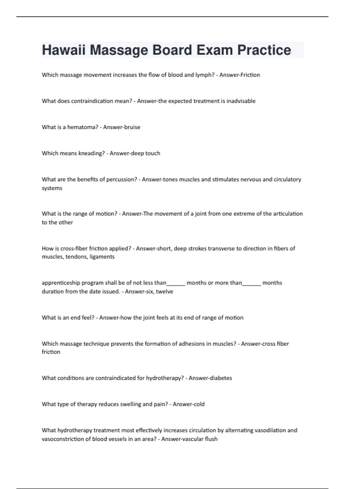 Hawaii Board State Exam- Massage Questions & Answers Already Passed!!