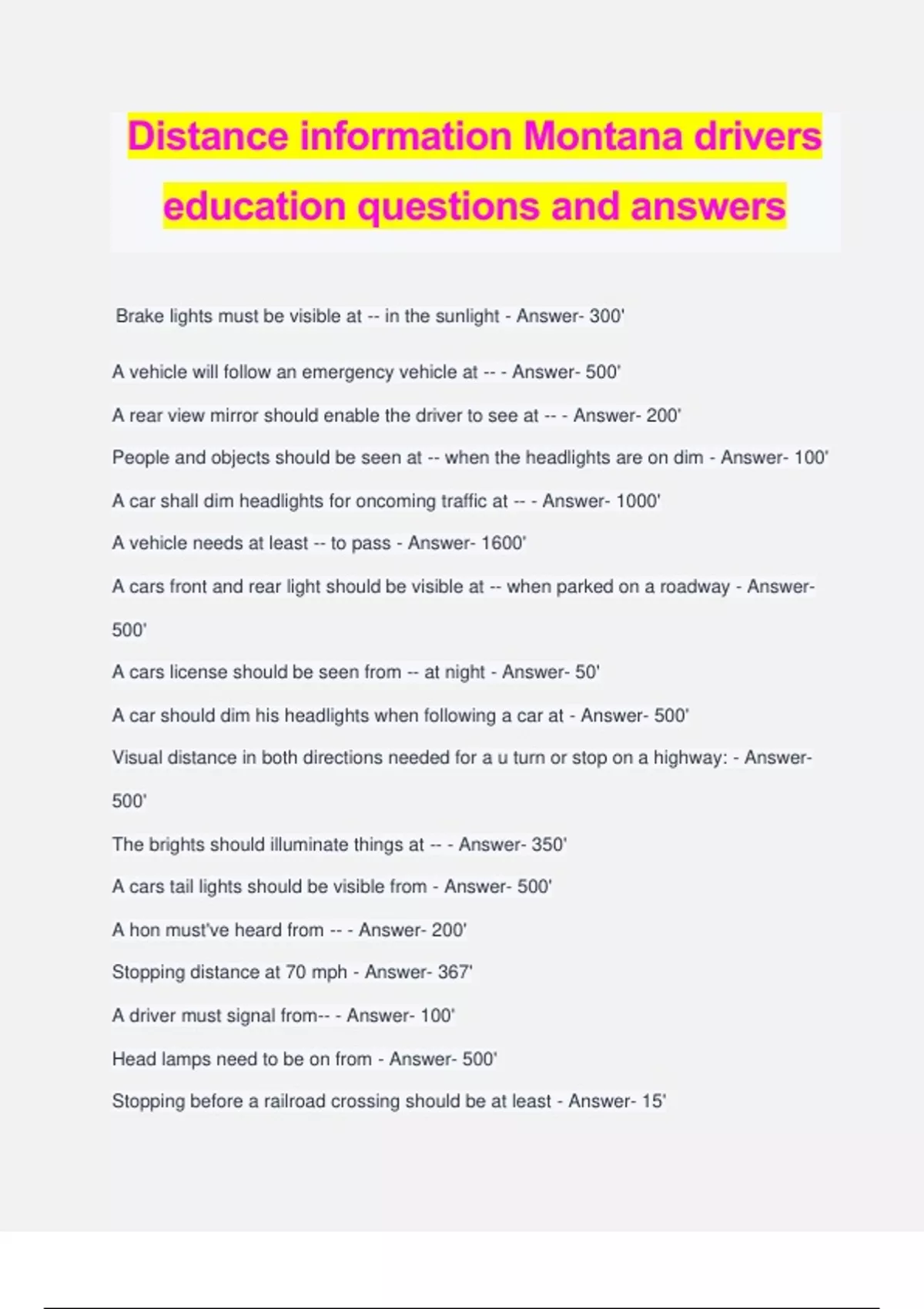 Montana Driver Manual Practice Questions and Answers 100% Pass