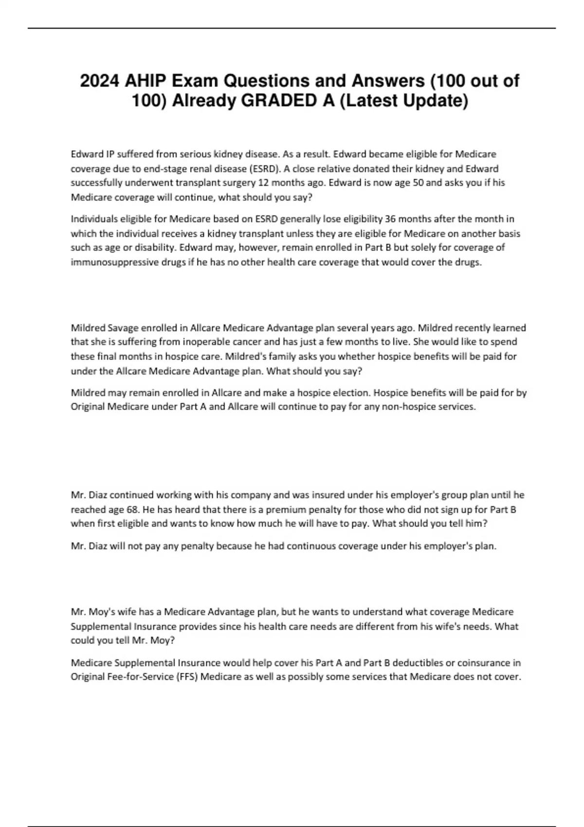 AHIP Exam | Questions and Answers (100 out of 100) Already GRADED A (Latest Update)