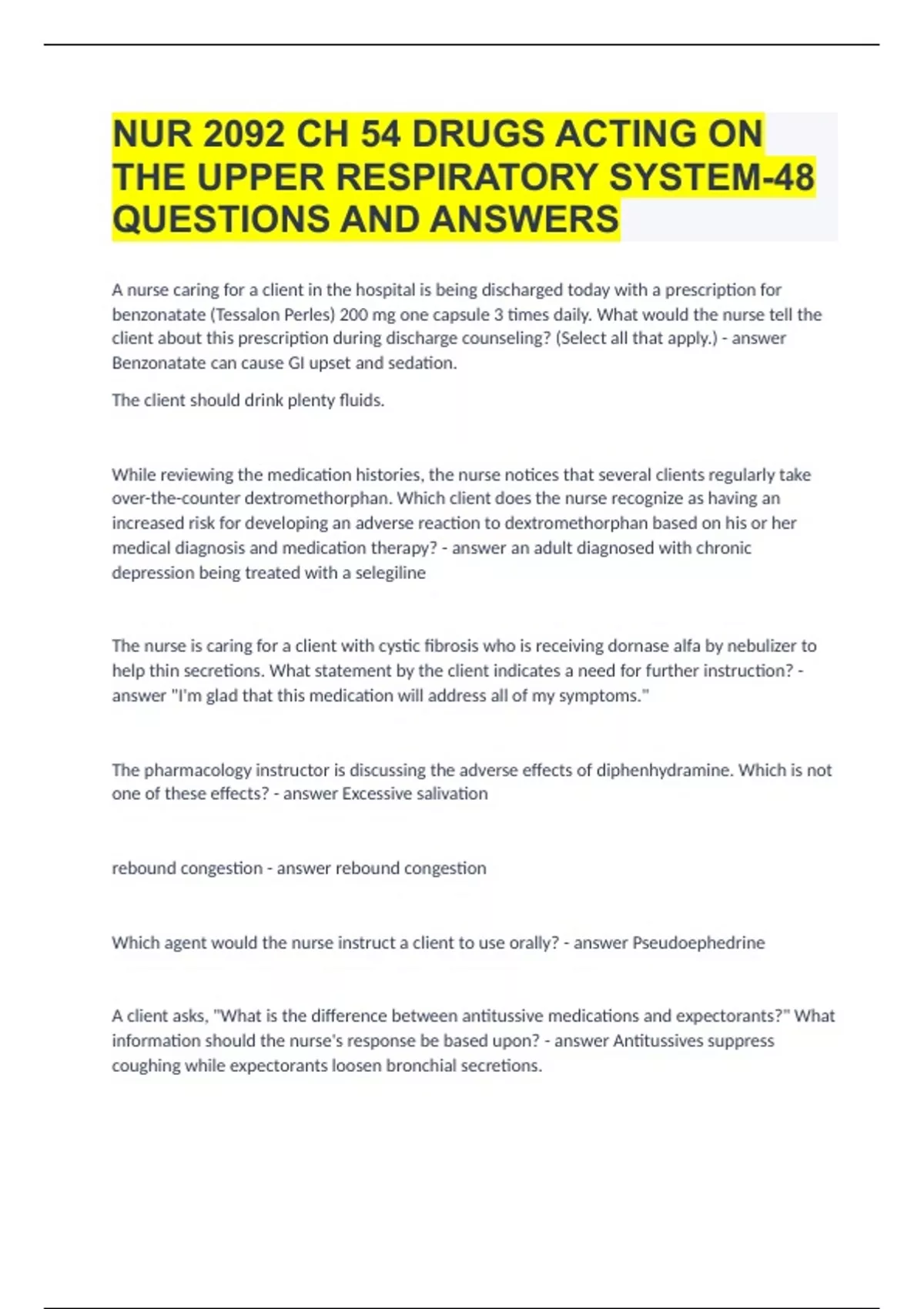 NUR 2092 PHARMACOLOGY- CH 42 INTRO TO THE CARDIOVASCULAR SYSTEM-47 QUESTIONS NUR 2092 PHARM CH 26 DRUGS-74 QUESTIONS FULLY SOLVED & VERIFIED 2024. NUR 2092 HEALTH ASSESSMENT EXAM 2-101 QUESTIONS AND ANSWERS EXAM 1 RASMUSSEN NUR 2092 Health Assessment WITH VERIFIED SOLUTIONS NUR 2092 PHARMACOLOGY CH 41 DRUGS AFFECTING THE MALE REPRODUCTIVE SYSTEM