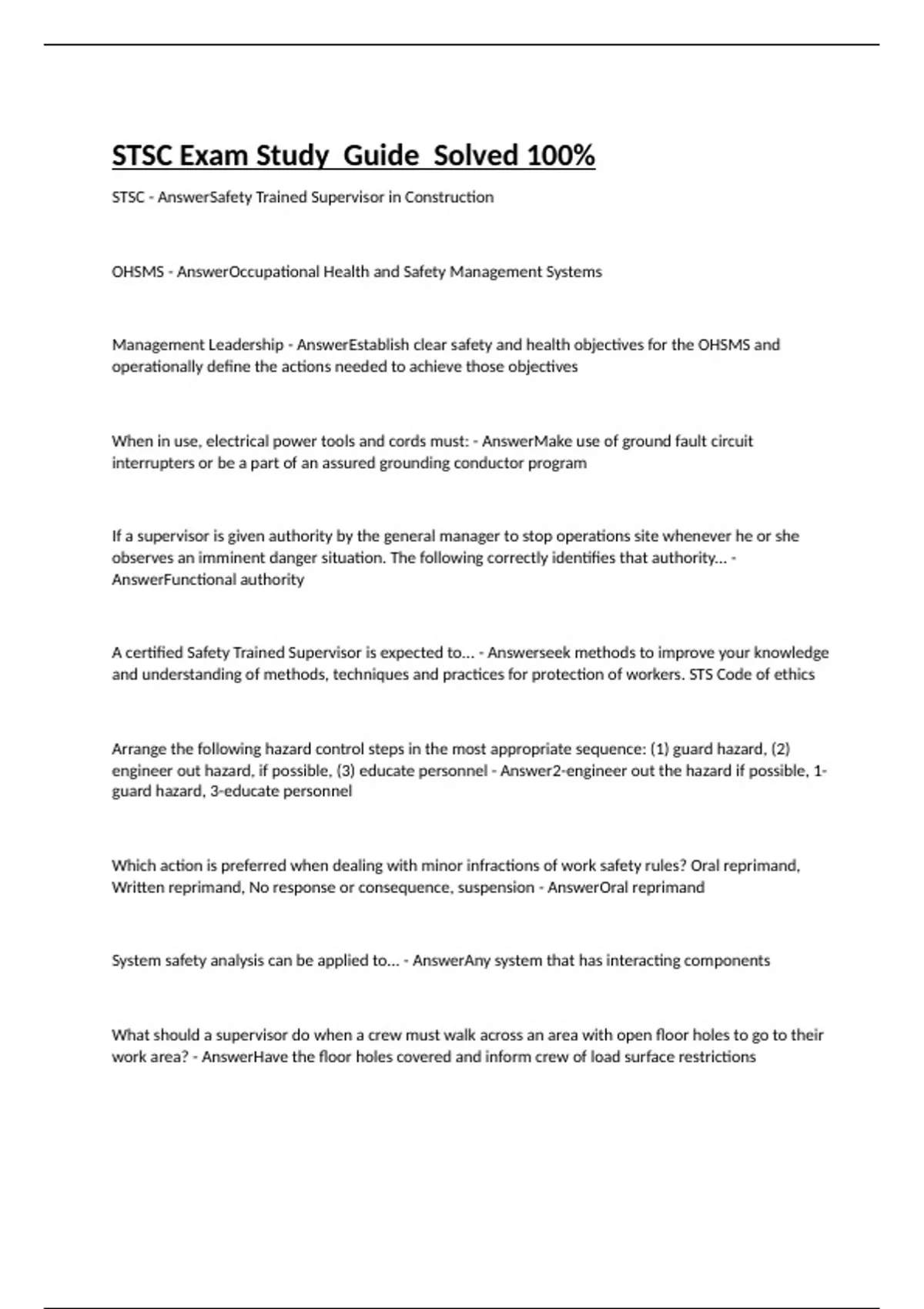 STSC Practice Questions & Answers Solved 100%
