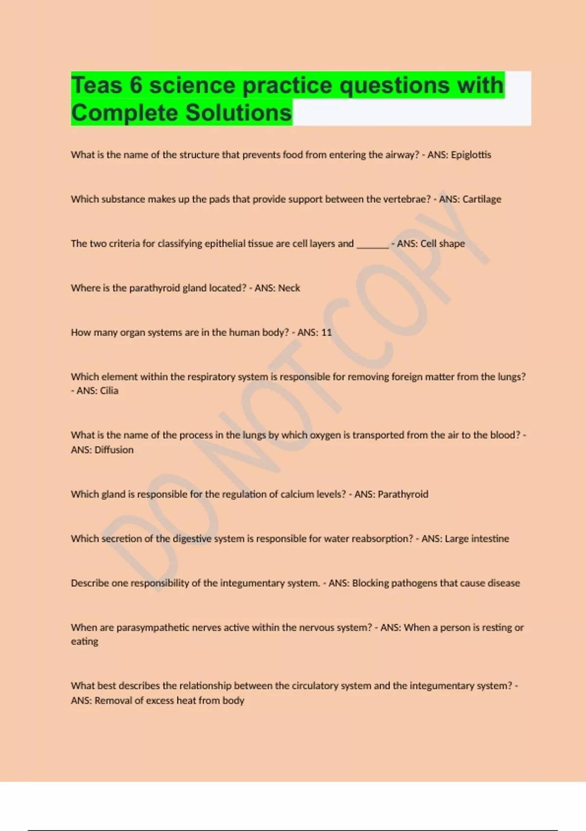 Teas 6 Science- Human Anatomy and Physiology Questions with Complete Solutions Bundle Compilation Graded A+